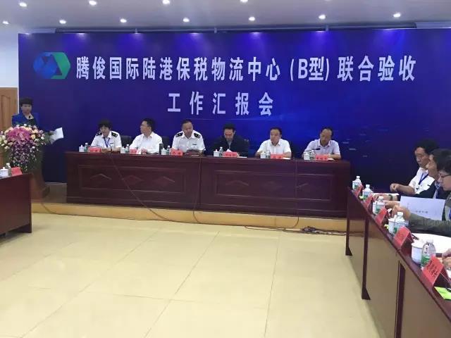 2017年6月30日,由昆明海關(guān)、財(cái)政部駐云南省財(cái)政監(jiān)察專員辦事處、云南省國(guó)家稅務(wù)局、國(guó)家外匯管理局云南省分局組成的聯(lián)合驗(yàn)收組,聽取了騰俊國(guó)際陸港保稅物流中心建設(shè)情況匯報(bào),對(duì)中心基礎(chǔ)和監(jiān)管設(shè)施建設(shè)情況進(jìn)行逐項(xiàng)檢查,觀看有關(guān)設(shè)施功能演示,審閱相關(guān)文檔資料,經(jīng)綜合評(píng)審,宣布中心通過聯(lián)合驗(yàn)收。