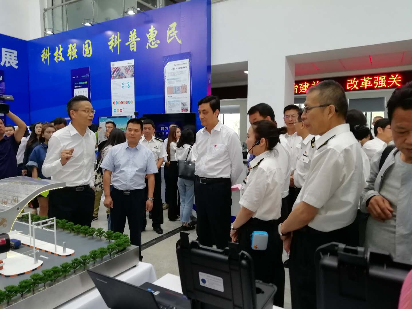通過這次科技周,航通展現(xiàn)了自身最新的技術(shù)與成果,未來航通愿意與昆明海關(guān)一起攜手,在海關(guān)創(chuàng)新科技應用和邊民互市等項目的運用上加強合作,展示航通的科技創(chuàng)新應用成果!更好的為海關(guān)的便利性、實用性和智能化貢獻自己的行業(yè)價值。