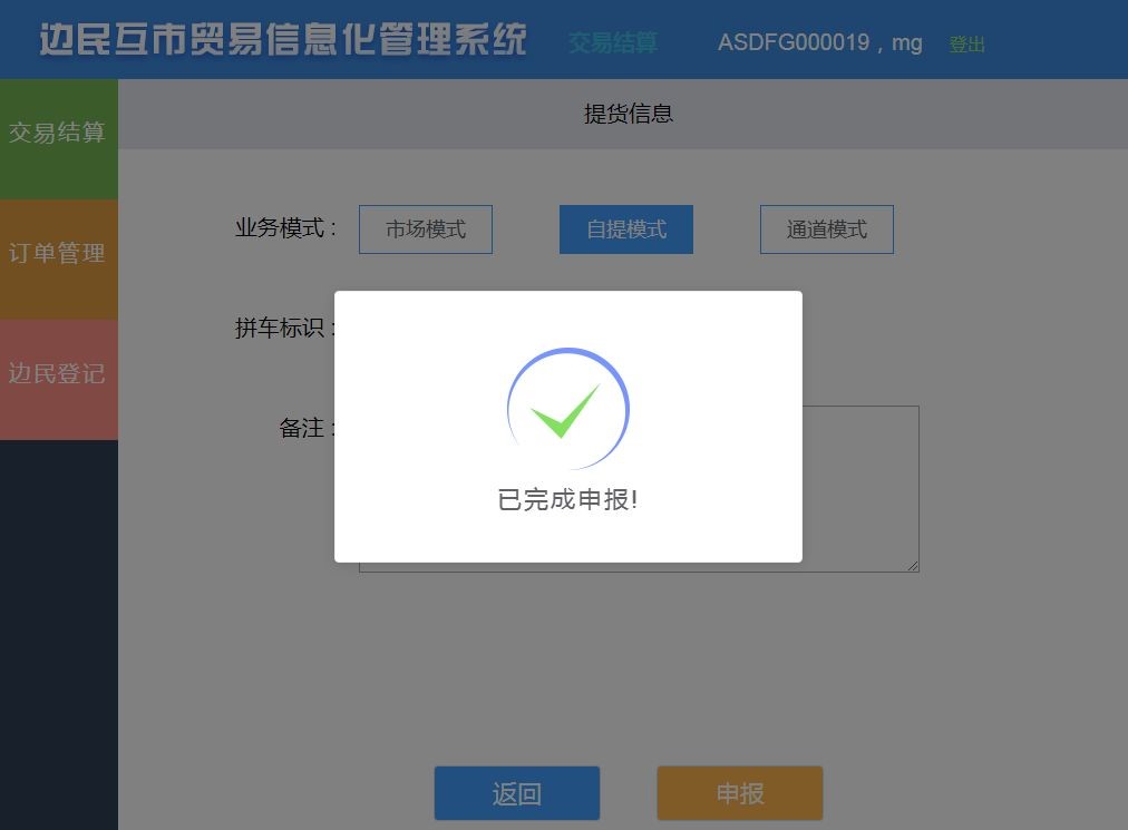 海關(guān)總署監(jiān)管司、科技司于2019年5月28日正式開始推行總署互市統(tǒng)一版系統(tǒng)的試運(yùn)行工作,航通反應(yīng)迅速,第一時(shí)間在滿洲里中俄邊民互市貿(mào)易區(qū)上線了航通運(yùn)營管理平臺(tái),并依照海關(guān)總署的聯(lián)調(diào)測(cè)試要求,成為業(yè)內(nèi)首家完成聯(lián)調(diào)測(cè)試且唯一實(shí)現(xiàn)與總署互市統(tǒng)一版系統(tǒng)成功對(duì)接的企業(yè)。